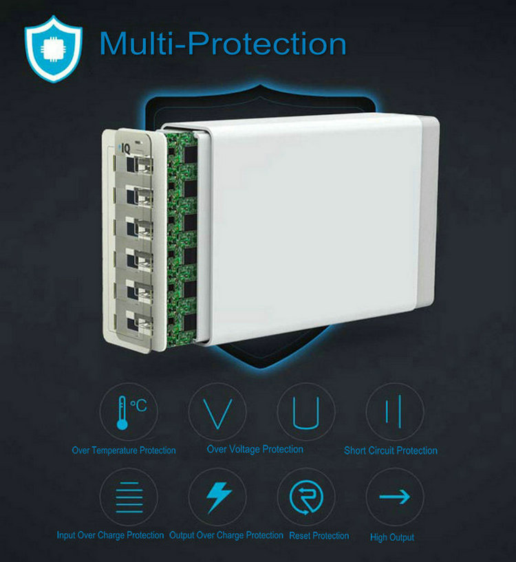 50W 6 Port USB Desktop Charger 5V 10A Intelligent IC Images |